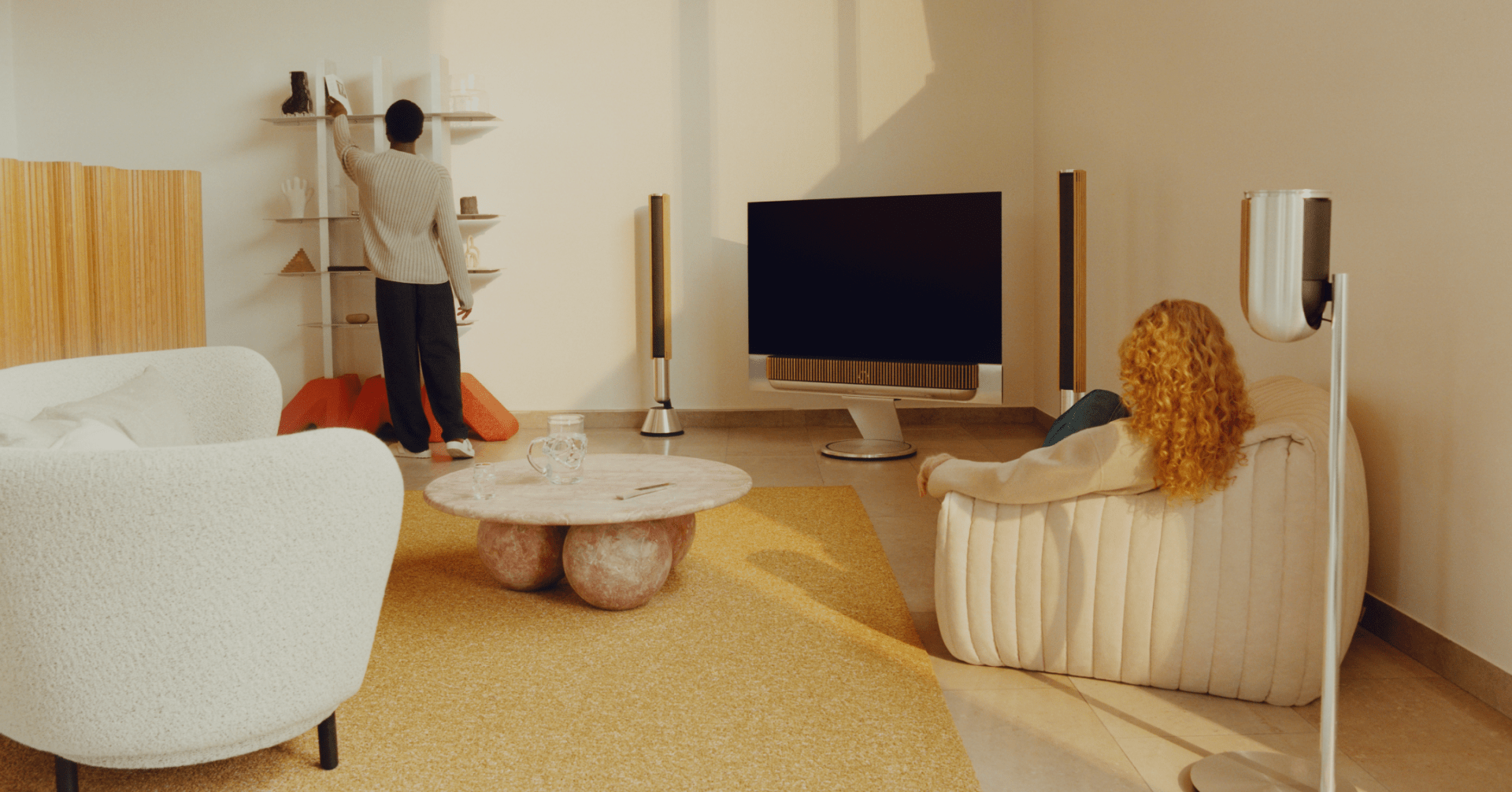 Jede Linie der Beovision Theatre folgt dabei einer klaren Funktion. Die Position der Lautsprecher, die Struktur der Frontabdeckung und die Form des Gehäuses wurden präzise aufeinander abgestimmt, um Klang optimal im Raum zu verteilen.